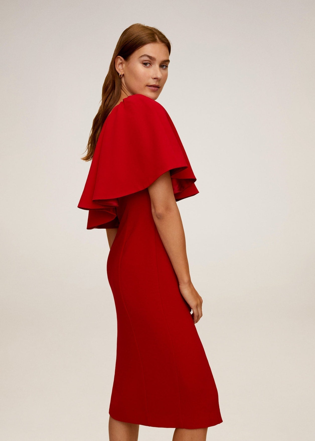 ✔️ Detail: Dramatic ruffle overlay at shoulder