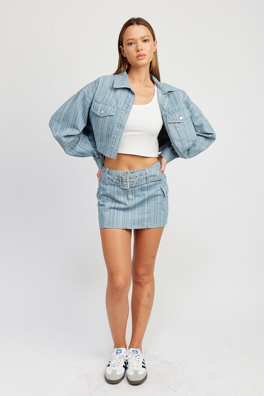 The Cargo Denim Mini Skirt is more than just a wardrobe staple – it's a statement piece that embodies the spirit of modern femininity.