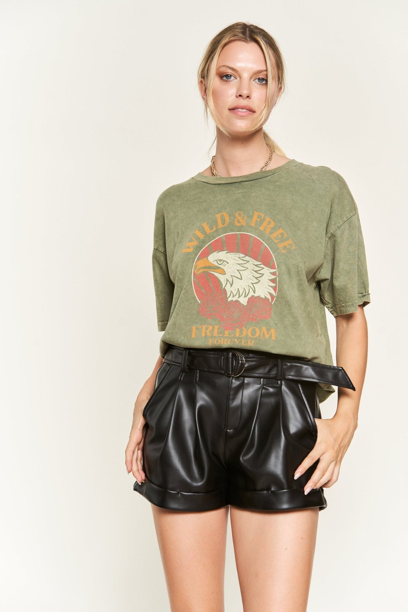 Features: Graphic T-Shirt, Round Neck, Washed, Eagle Print, Print Tee