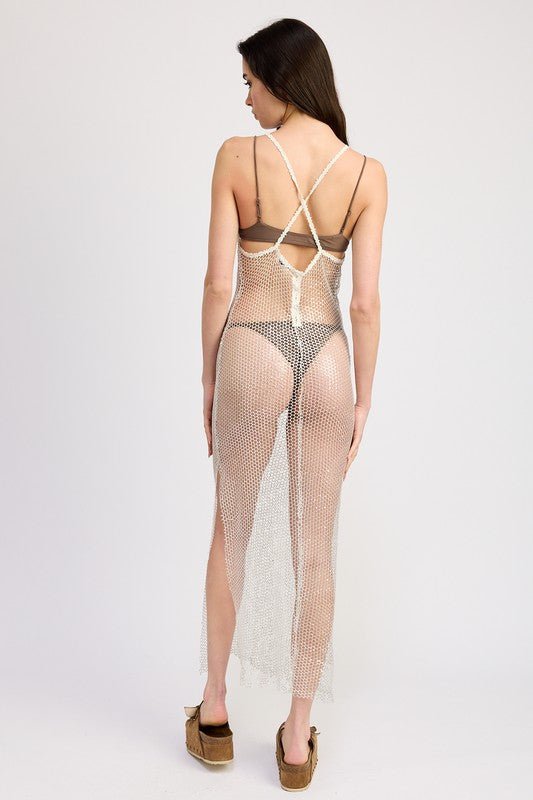 Whether you're lounging by the pool, attending a beach party, or seeking a unique piece for a summer soirée, this Fish Net Halter Maxi Dress is your ticket to effortless glamour and seaside sophistication.