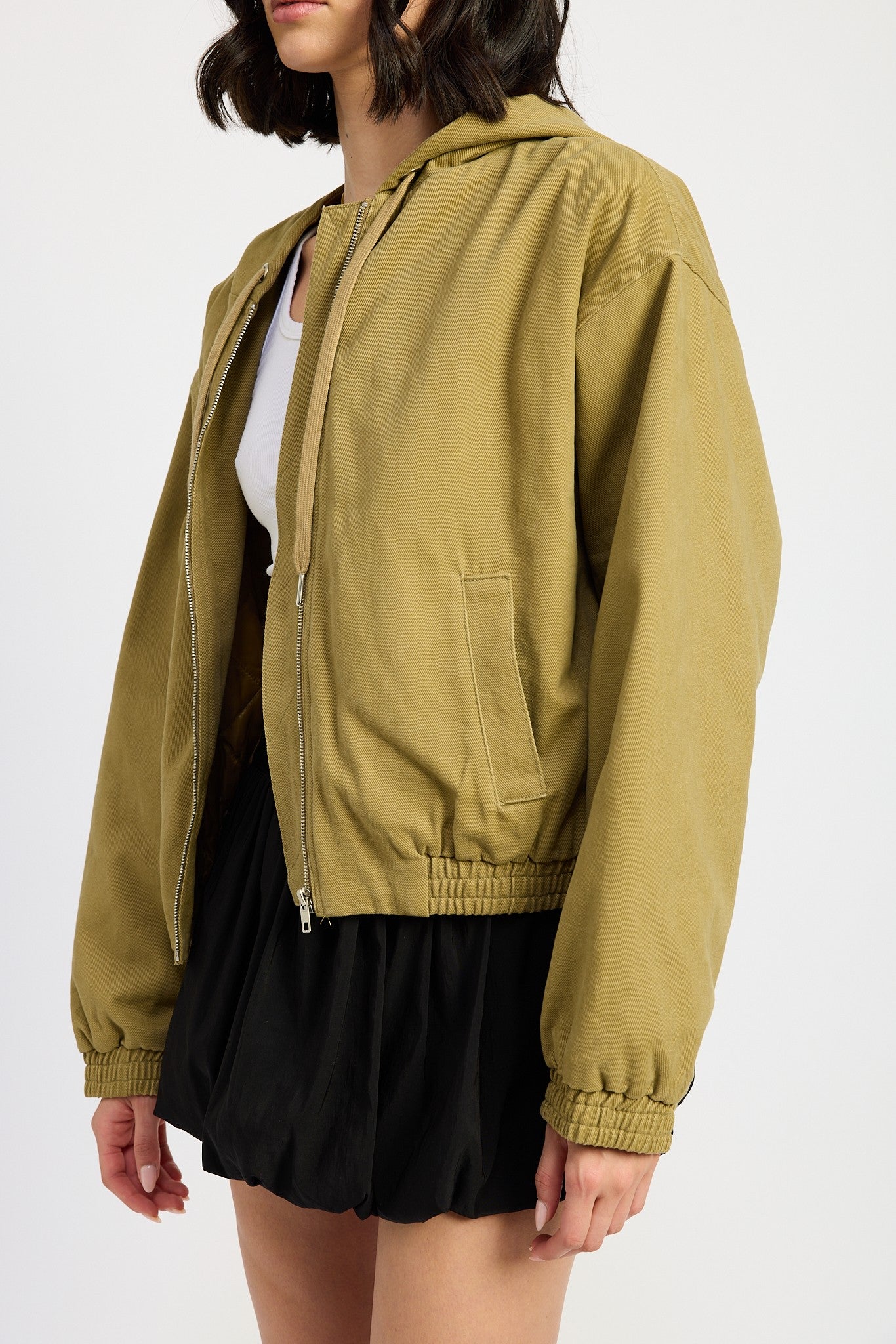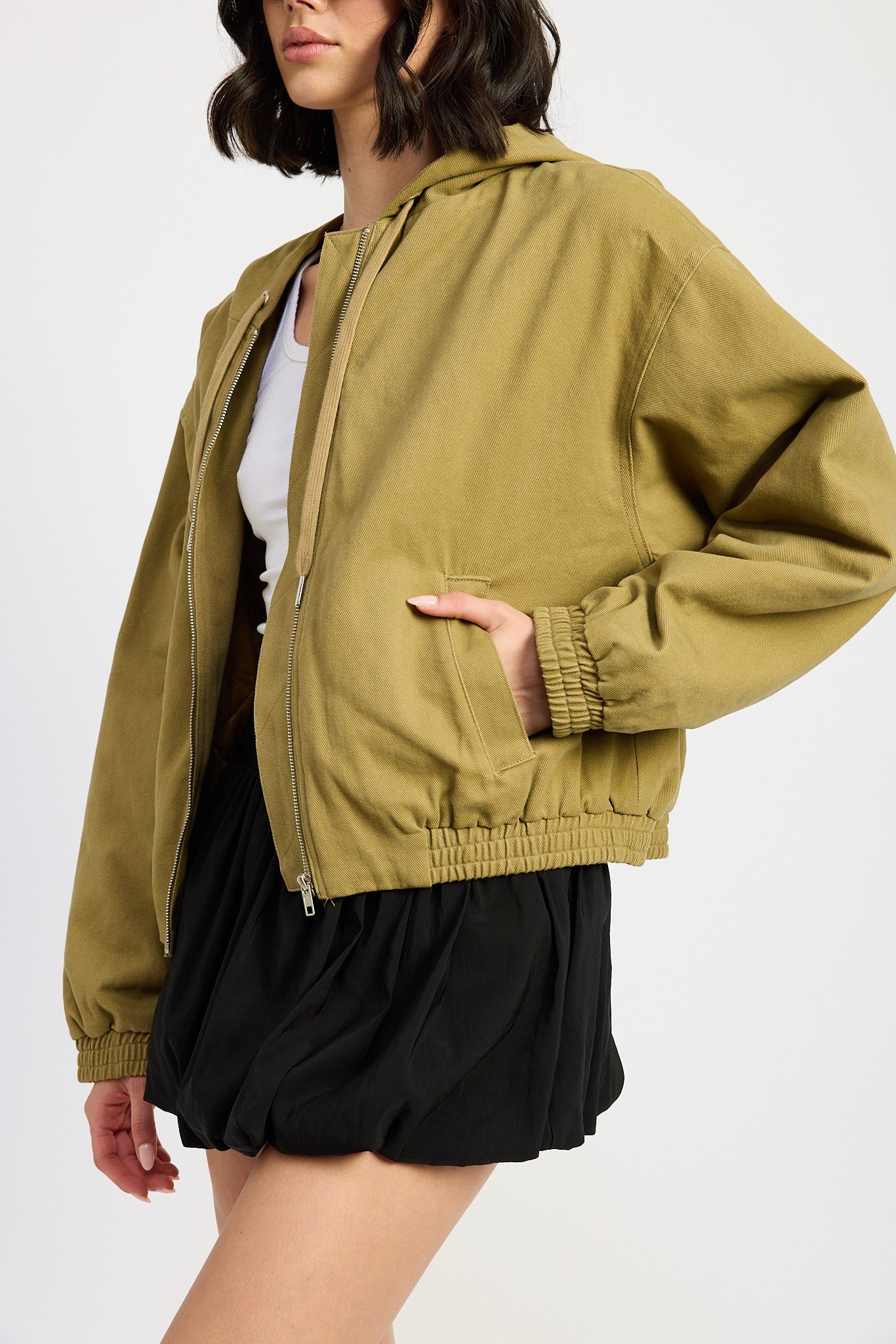 Elevate your wardrobe with the stylish hooded denim bomber jacket, the perfect blend of casual comfort and trendy design. Crafted from premium denim, this jacket features a cozy hood and a classic bomber silhouette, making it a versatile choice for any season. Whether you're dressing up for a night out or keeping it casual during the day, this casual denim bomber jacket is your go-to outerwear. Designed for style and functionality, the hooded denim jacket pairs effortlessly with jeans, leggings, or dresses for a chic, everyday look.