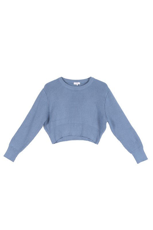 Features: Ribbed knit crop top and skirt set, round neck, long sleeves,
