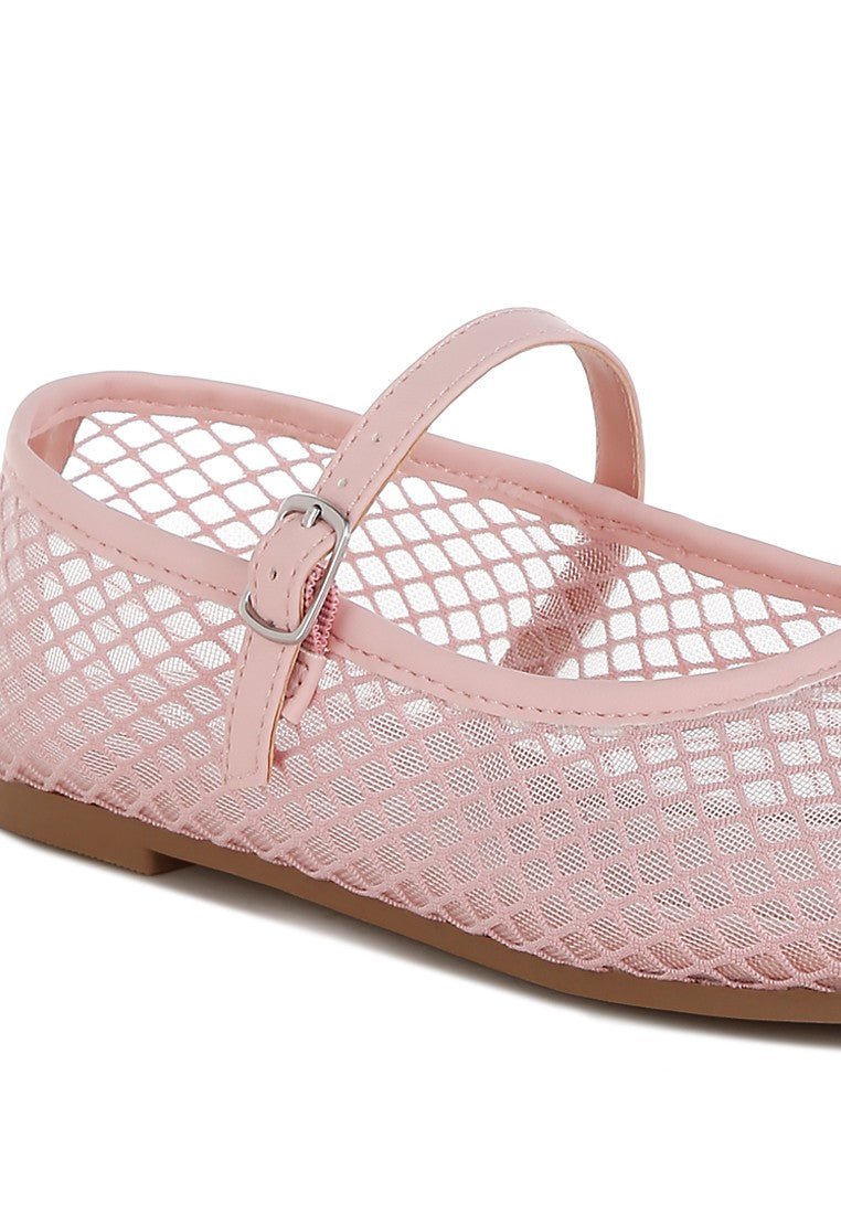 Features: Mary Jane Ballerinas, Flat Heels, Closed Almond Toe, Sheer Design, Pin Buckle Fastening, Light Cushion Insoles, Closure Buckle