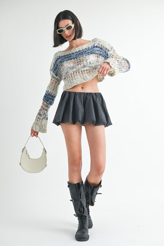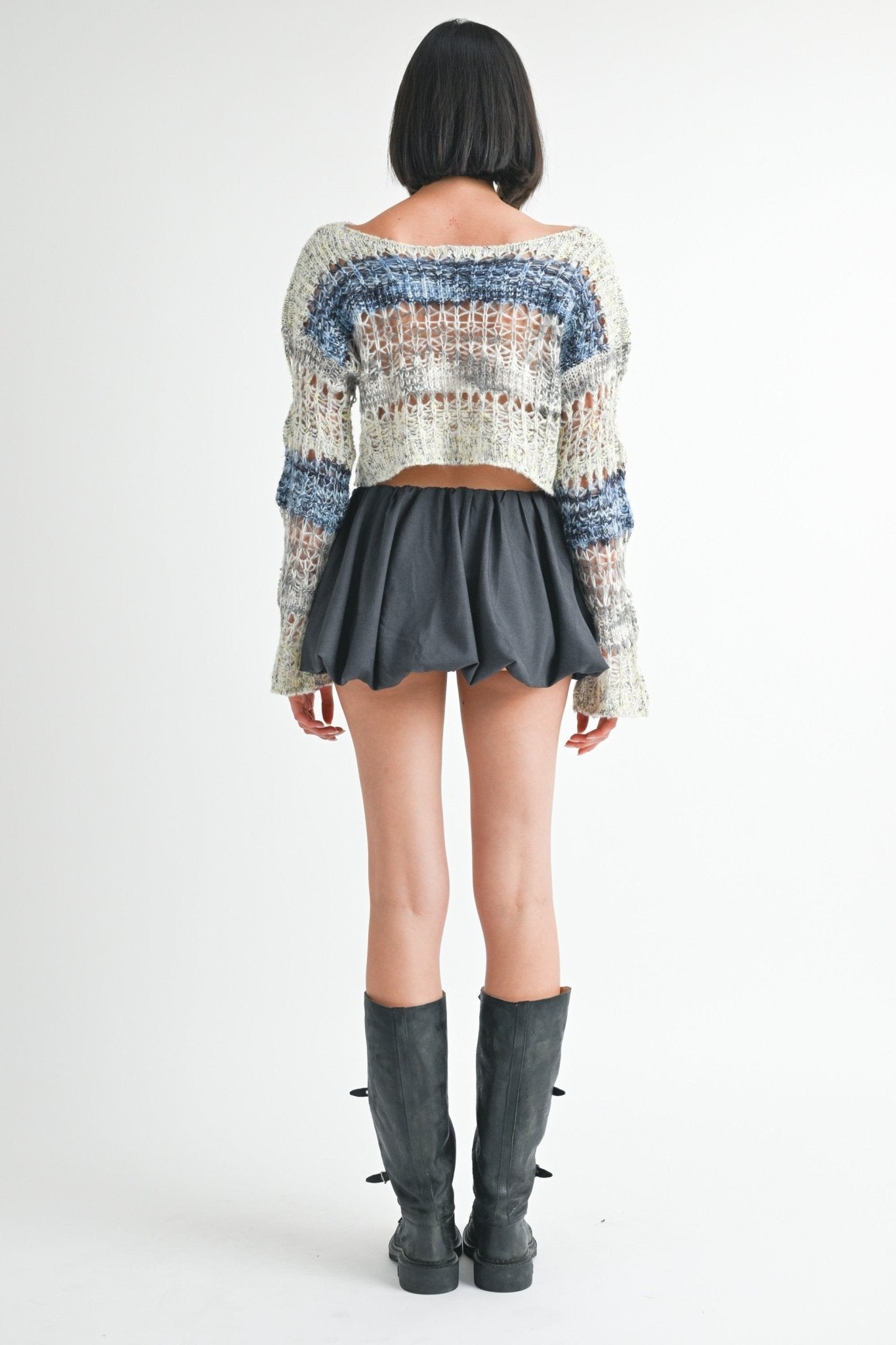 Features: Sweater, Cropped Length, Long Sleeve, Loose Knit, Striped, Multi Color, Stretch Fabric